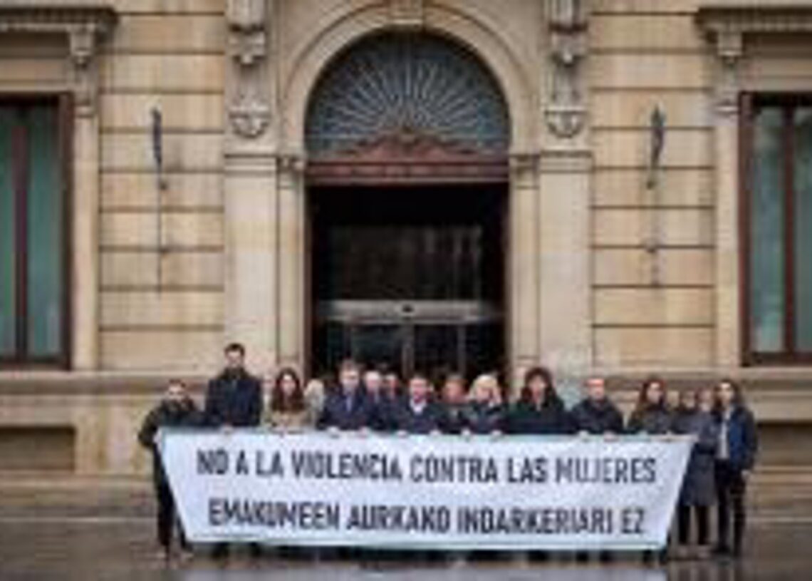 Los miembros del Parlamento de Navarra se han reunido a las puertas de la institución a las 12 horas de este martes, para manifestar su rechazo a los tres crímenes de violencia machista que han ocurrido recientemente en España.