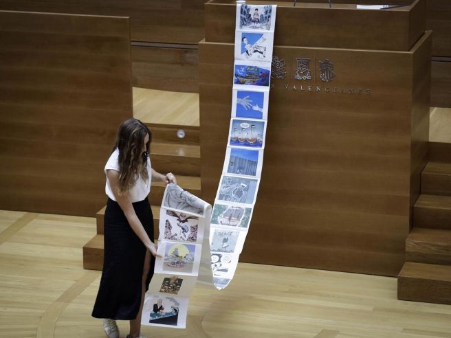 Compromís, con un diputado (Juan Bordera) en la Global Summud Flotilla, propuso iniciar el debate con un minuto de silencio en honor a las víctimas del genocidio perpetrado por Israel contra los palestinos, gesto que solo fue secundado por los representantes de Compromís y del PSPV.