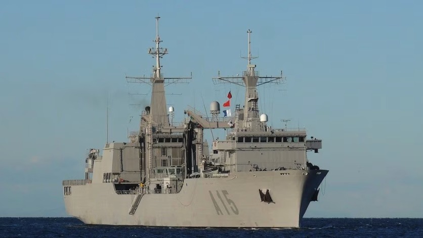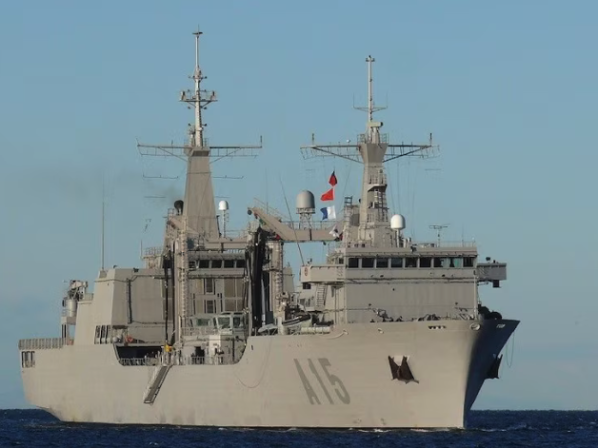 Completado el trasvase de suministros en un entorno de climatología adversa, está previsto que el 'Cantabria' regrese al Arsenal de Ferrol entre este miércoles y el jueves.
