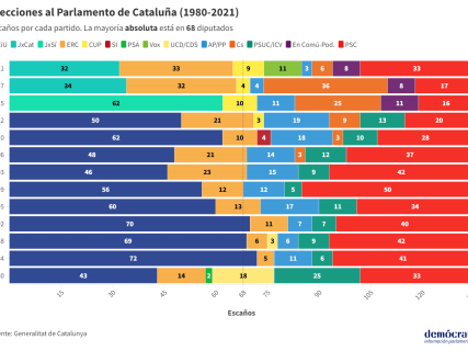 Una clave más de la noche electoral será el grado de concurrencia de la ciudadanía a las urnas. Antes del inicio del procés independentista, culminado con el desafío secesionista del 1-O y las movilizaciones posteriores a la aplicación del 155 de la CE en Cataluña, los comicios catalanes no se caracterizaban por una gran participación. Así, entre 1980 y 2010, los datos oscilaban entre el 59-64%, con el mínimo de 2006 (por debajo del 57%), que permitió la reedición del Gobierno tripartito entre PSC, ERC e ICV, y el máximo de 1984, cuando Pujol consiguió su mejor resultado y la primera de sus tres mayorías absolutas.