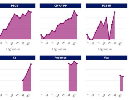 2. Se han dejado fuera también las participaciones de menos de un minuto de duración. Se tratan en su mayoría de juramentos para tomar posesión del escaño, cuestiones de orden, solicitudes de turno de palabra por alusiones, discursos de la Mesa de Edad… Suponían menos del 1% del total de intervenciones recopiladas.