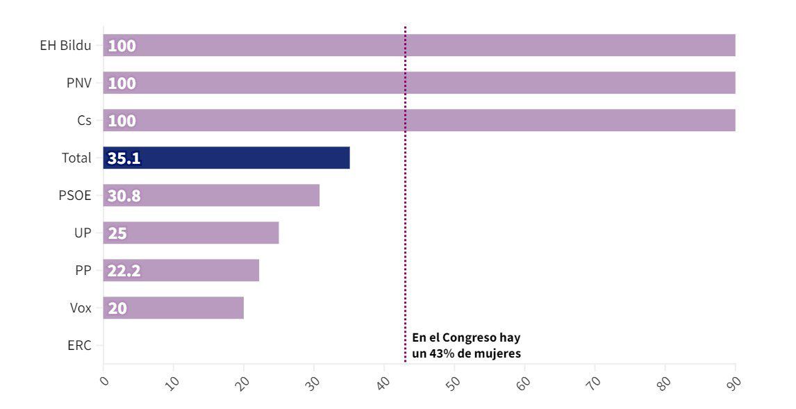 Bien sea de forma deliberada o por una inercia anclada en la tradición, el reparto de los miembros de cada grupo parlamentario entre las decenas de comisiones genera unas brechas de género que dificultan el acceso de las mujeres a no pocas temáticas. Esto, además de restarles visibilidad, impide que ellas dejen su impronta legislativa en ciertos ámbitos.