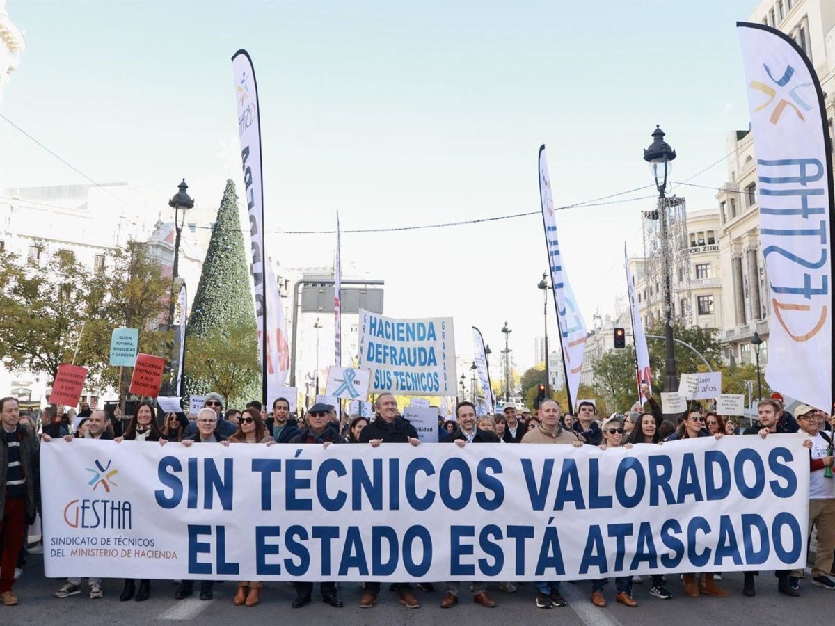 El sindicato Gestha ha informado que aproximadamente 4.000 empleados del Ministerio de Hacienda participaron en la huelga de este miércoles, después de excluir a aquellos asignados a servicios mínimos y los ausentes por baja. La protesta, que tuvo lugar en Madrid, contó con una masiva concentración de más de 2.000 técnicos de diversas partes de España, quienes marcharon de manera pacífica desde Cibeles hasta la sede del Ministerio en la calle Alcalá.