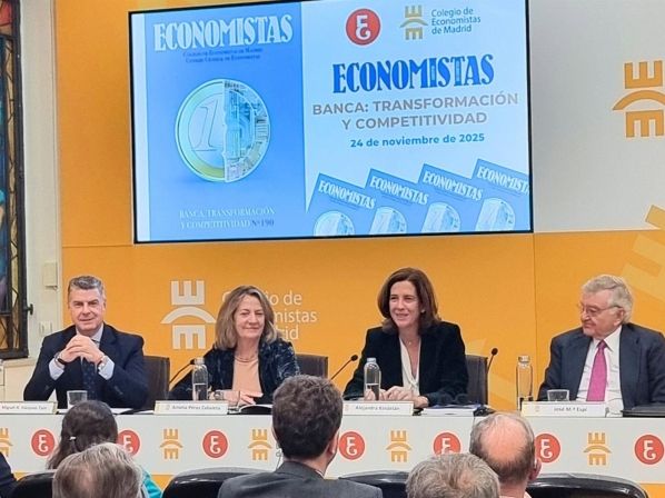 Espí abordó la transformación del sector, marcada por la innovación tecnológica y los nuevos actores en el mercado, que configuran un nuevo orden financiero. Vázquez Taín, en la clausura, resaltó el papel crucial de la banca en la economía y el valor del análisis realizado en el monográfico. “La banca es el sistema circulatorio de la economía: canaliza financiación, impulsa inversión y garantiza estabilidad. Este número de Economistas ofrece un diagnóstico completo del sistema financiero europeo y español, con sus fortalezas y sus desafíos, pero también con grandes oportunidades. Su valor reside en el rigor técnico y la visión estratégica de los autores, un ejemplo del servicio que desde la organización colegial queremos seguir prestando a la sociedad”, concluyó.