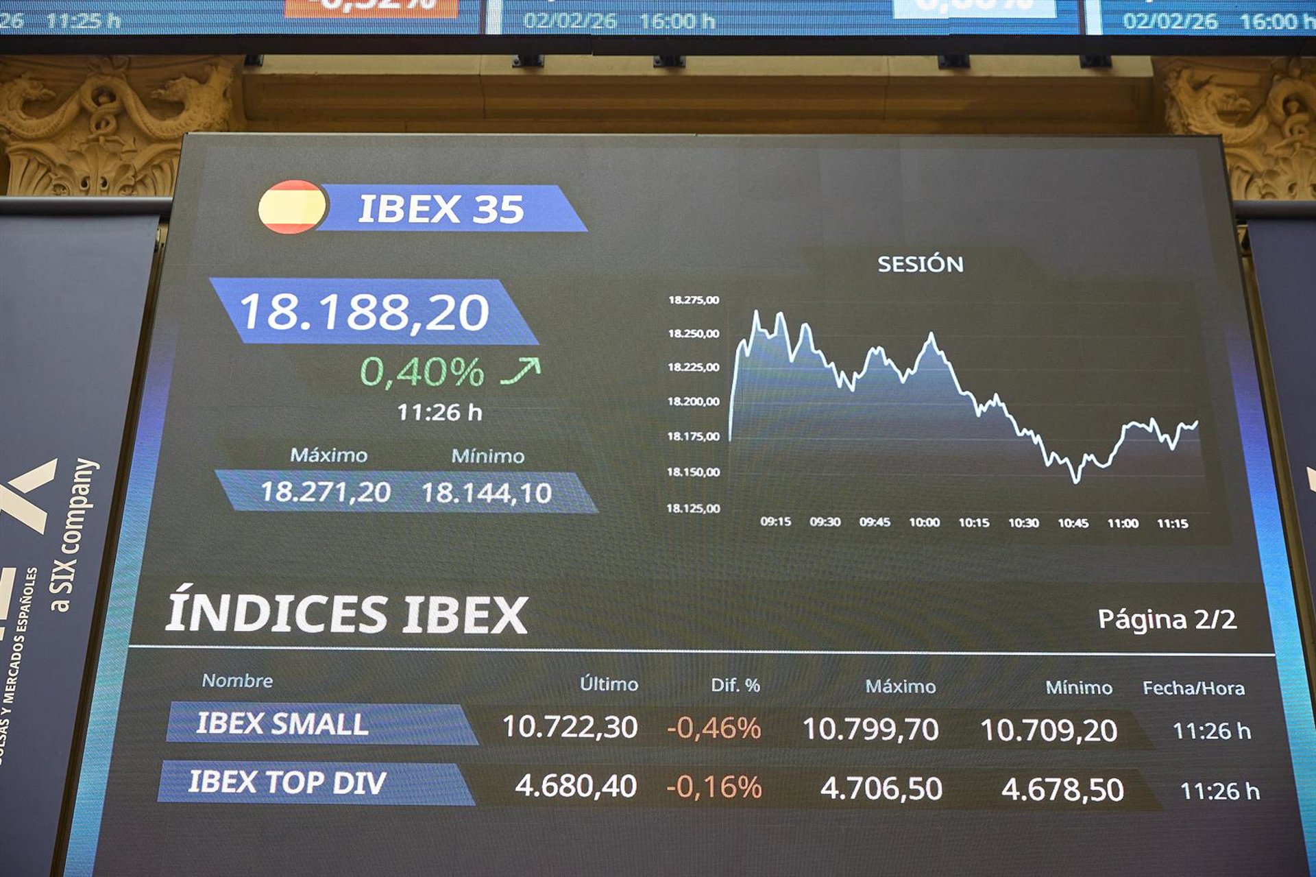 En contraste con la evolución de Aena, el Ibex 35 ha iniciado la jornada en terreno positivo, con un avance del 0,31% que le permite recuperar la cota de los 18.000 puntos. Mientras el índice se ve respaldado por otros pesos pesados como Puig o Indra, el gestor aeroportuario corrige tras haber marcado máximos recientes, moviéndose en la apertura en una horquilla de entre 28,03 y 28,81 euros.