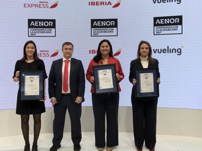 La Asociación Española de Normalización y Certificación (AENOR) ha otorgado al grupo IAG, matriz de Iberia y Vueling, la Certificación Compromiso con la Accesibilidad 360º durante la celebración de Fitur 2026.