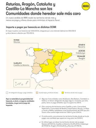 En el extremo contrario, Navarra, Castilla-La Mancha, Cataluña, Aragón y Asturias pueden llegar a reclamar más de 100.000 euros, siendo estas dos últimas las que aplican una fiscalidad más onerosa, según explica la abogada fiscalista de Arag María Esther González.