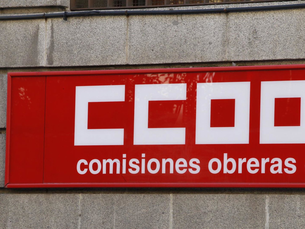 Logo CCOO, Comisiones Obreras, cartel CCOO EUROPA PRESS