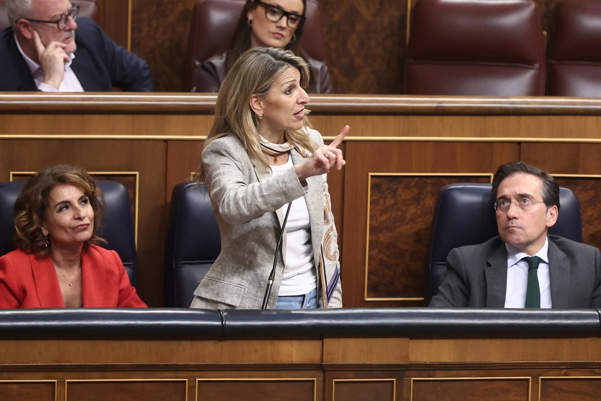 La vicepresidenta segunda y ministra de Trabajo y Economía Social, Yolanda Díaz, interviene durante una sesión de control al Gobierno, en el Congreso, a 25 de marzo de 2026, en Madrid (España). Eduardo Parra - Europa Press