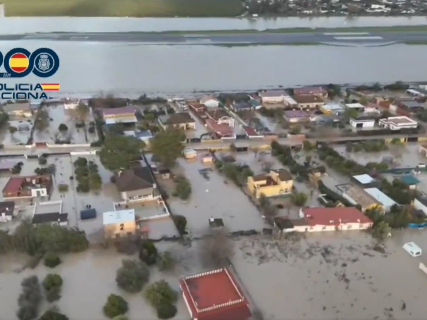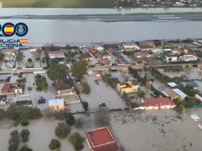 Inundación del aeropuerto de Córdoba y parcelas junto a él por el temporal del tren de borrascas. POLICÍA NACIONAL