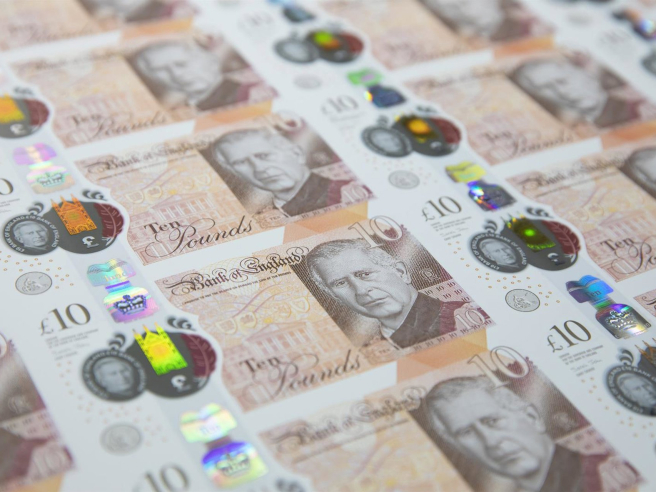 Billetes de libras esterlinas con el retrato del rey Carlos III. BANCO DE INGLATERRA