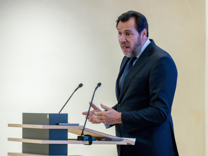 El ministro de Transportes y Movilidad Sostenible, Óscar Puente, analiza la inversión en infraestructuras de transportes, en el Colegio de Ingenieros de Caminos, a 15 de abril de 2026, en Madrid (España). Ricardo Rubio - Europa Press