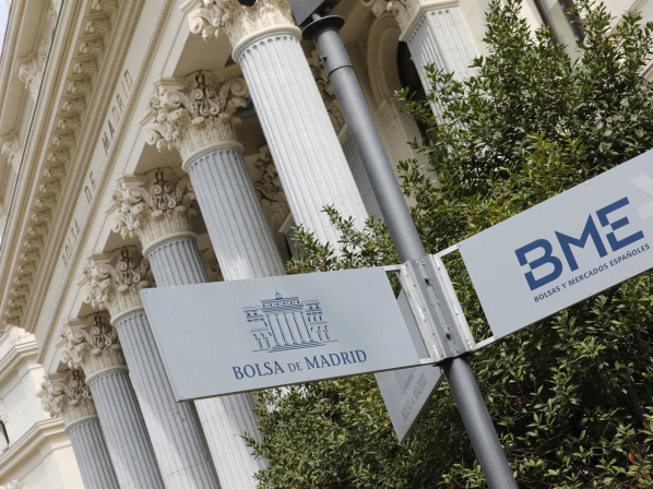 Cartel colocado en las inmediaciones del edificio de la Bolsa de Madrid Marta Fernández Jara - Europa Press