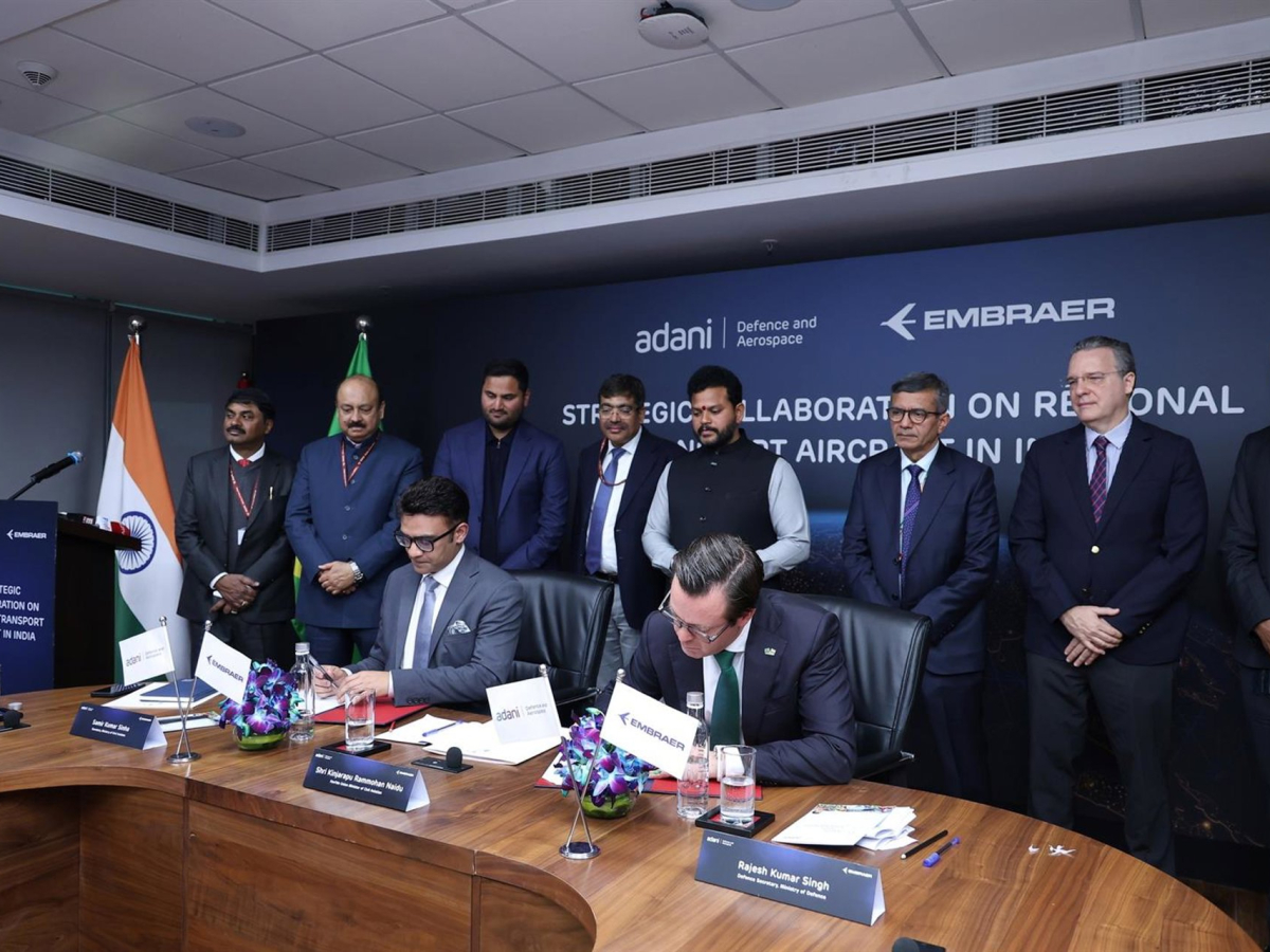 El fabricante brasileño de aviones Embraer y la división aeroespacial y de defensa del Grupo Adani, Adani Defence & Aerospace, han suscrito un memorando de entendimiento con el fin de impulsar en India un ecosistema integrado de aeronaves de transporte regional, según ha detallado Embraer en un comunicado.