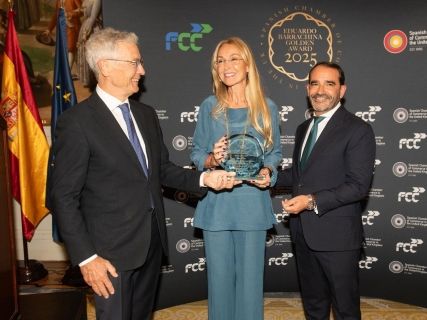 En un evento celebrado en Londres, la Cámara de Comercio Española en el Reino Unido ha concedido el ‘Premio Eduardo Barrachina de Oro 2025’ a la empresa FCC. Esther Alcocer Koplowitz, presidenta del conglomerado, estuvo presente para recibir el premio en la residencia del embajador español.