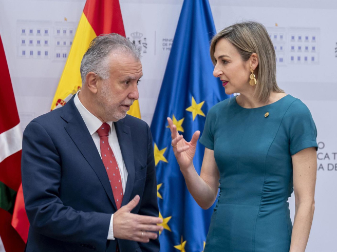El ministro de Política Territorial y Memoria Democrática, Ángel Víctor Torres, junto a la consejera de Gobernanza, Administración Digital y Autogobierno del Gobierno Vasco, Maria Ubarretxena, este viernes en Madrid. Alberto Ortega - Europa Press