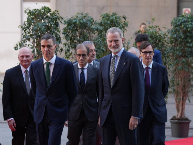 El monarca ha accedido al recinto acompañado por el presidente del Gobierno, Pedro Sánchez, y a su llegada han sido recibidos por el presidente de la Generalitat, Salvador Illa; el ministro para la Transformación Digital y de la Función Pública, Óscar López, y el ministro de Industria y Turismo, Jordi Hereu.