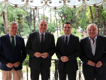 El presidente del Ictes, Miguel Mirones; el consejero de Turismo de la Junta de Andalucía, Arturo Bernal; el alcalde de Córdoba, José María Bellido, y el presidente del Consejo Empresarial de Turismo de Andalucía en la CEA, José Carlos Escribano ICTES