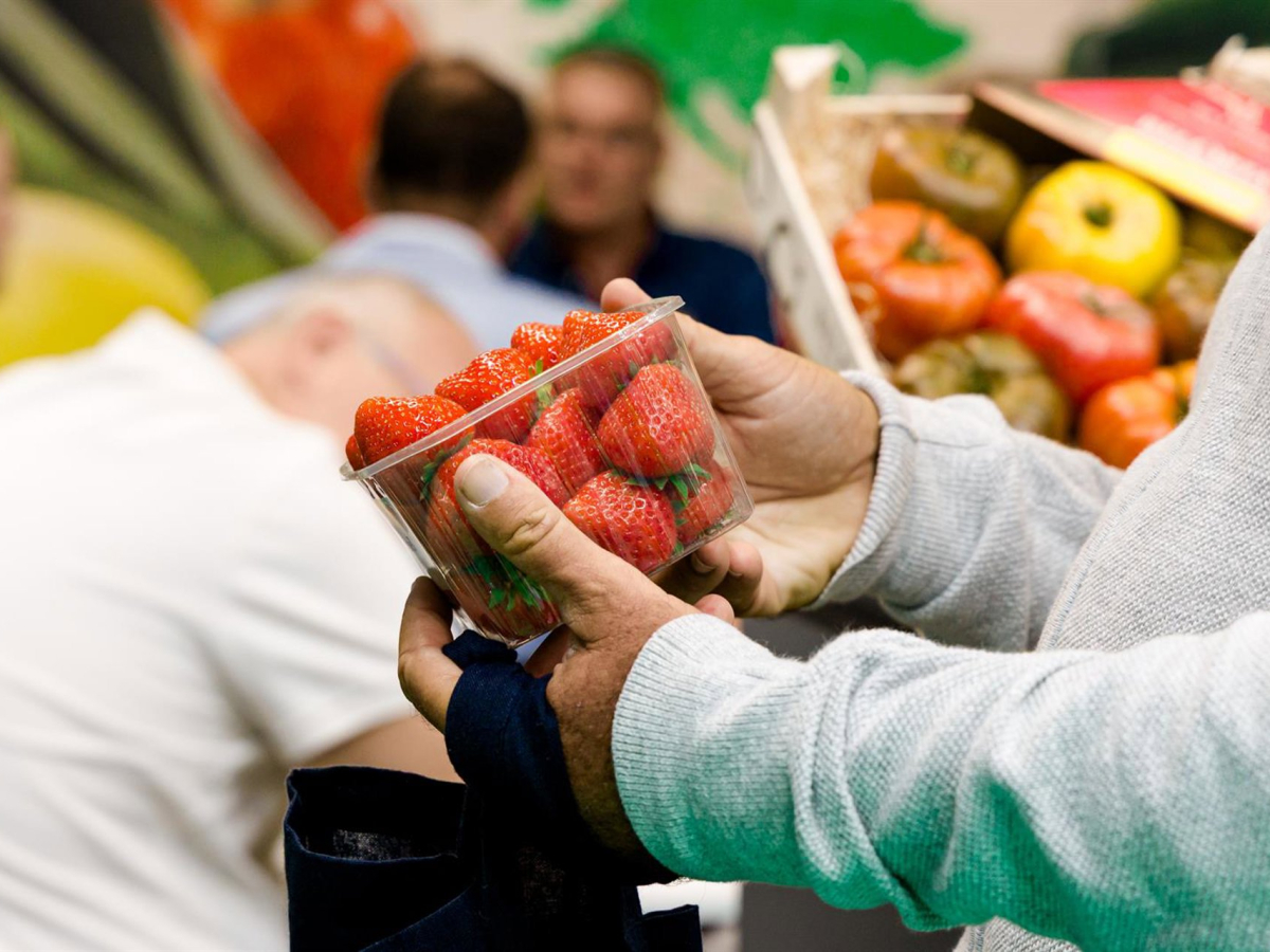 Un hombre comprando un cuenco de fresas Carlos Luján - Europa Press