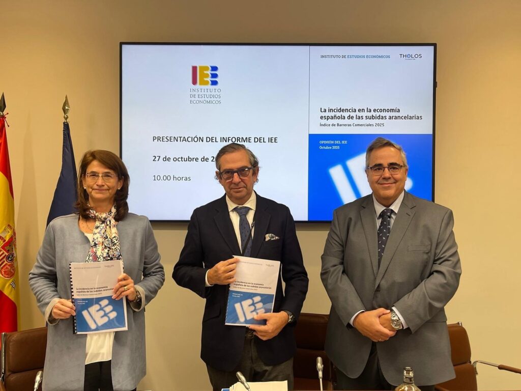 El Instituto de Estudios Económicos (IEE) prevé que la elevación de los aranceles podría mermar el Producto Interior Bruto (PIB) de España en un rango de 0,1 a 0,2% en 2025, y hasta un 0,4% en 2026. En una conferencia de prensa reciente, Íñigo Fernández de Mesa, presidente del IEE, junto a Gregorio Izquierdo, director general, y María Concepción Latorre, Catedrática de Economía Aplicada de la Universidad Complutense de Madrid, han expuesto el estudio «La incidencia en la economía española de las subidas arancelarias. Índice de Barreras Comerciales 2025».