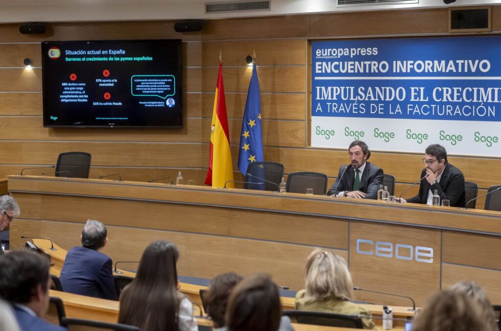 “La estructuración de datos de la factura electrónica con una capa de inteligencia artificial (IA) va a permitir reducir considerablemente los errores humanos, lo que supone un ahorro de tiempos y de hasta 13.500 euros de impacto directo por una mejora y eficiencia en los procesos y en la gestión”, explicó Martín durante un evento informativo en Madrid, organizado por Sage y Europa Press.