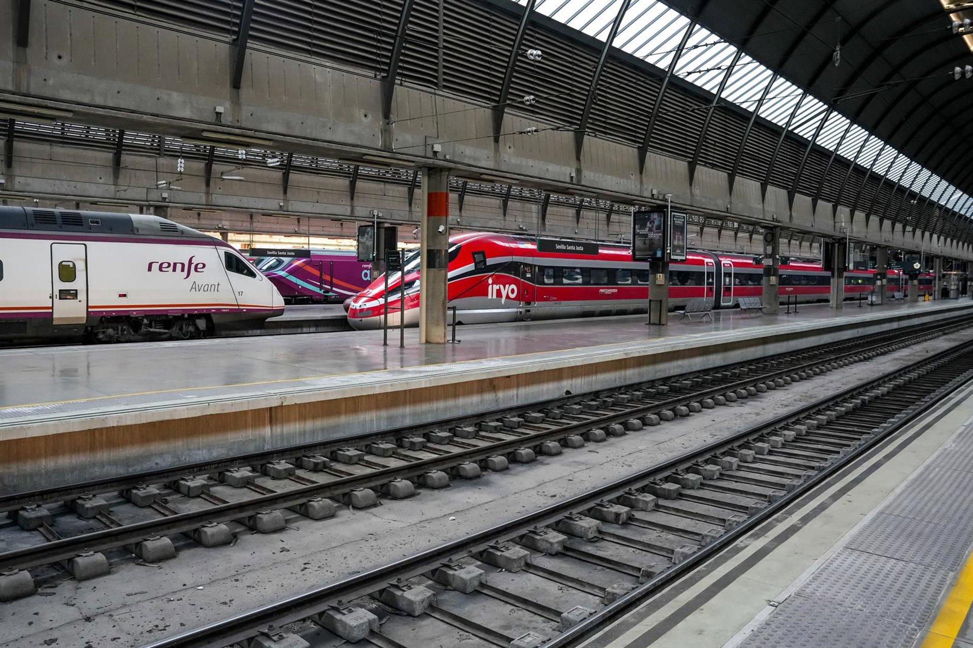 Un tren Irlo y un Avant parados en la estación de Santa Justa de Sevilla Eduardo Briones - Europa Press