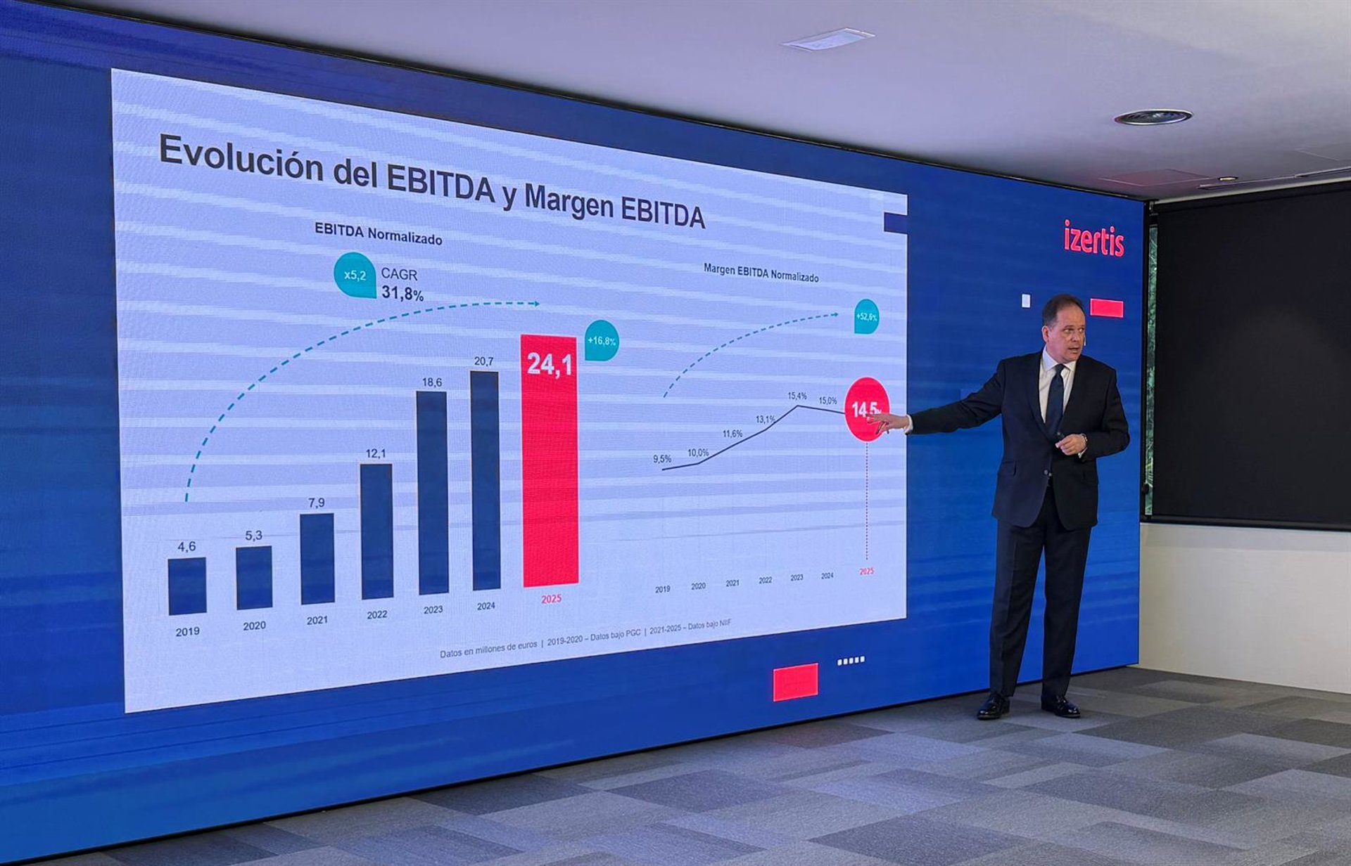 Martín ha destacado además que Izertis celebra este año su trigésimo aniversario. “Es algo realmente importante que una compañía logre estar 30 años ejecutando un plan de negocio y cumpliendo año tras año con todos esos objetivos, creciendo ininterrumpidamente”, ha manifestado este miércoles durante la presentación de resultados de la firma, que registró en 2025 un beneficio de actividades continuadas de 4,45 millones de euros, un 1,8% más que en el ejercicio anterior.