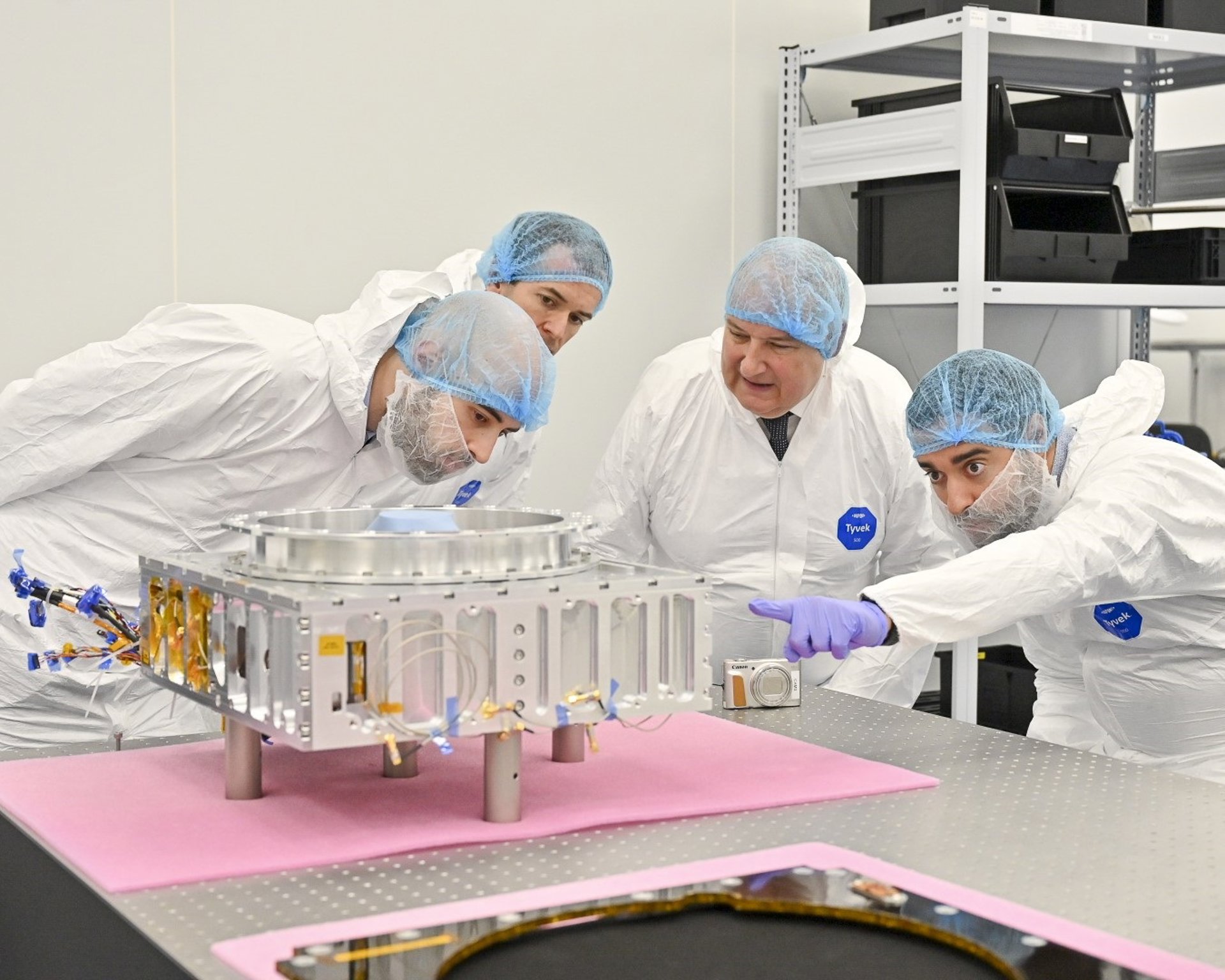 El recorrido ha incluido una visita a la ampliación de la Sala Blanca, un área de 200 metros cuadrados que permitirá incrementar de forma notable el número de satélites que pueden integrarse al mismo tiempo, reforzar la infraestructura destinada a misiones institucionales y comerciales, y captar nuevos proyectos de ámbito internacional.