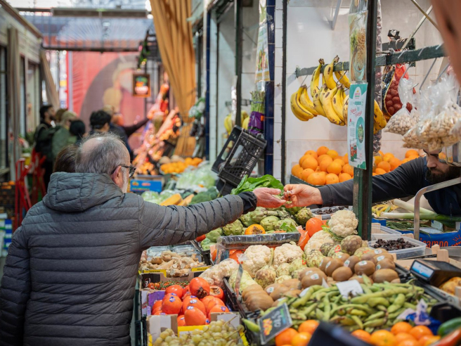Un hombre en un puesto del mercado de abastos realiza sus compras María José López - Europa Press