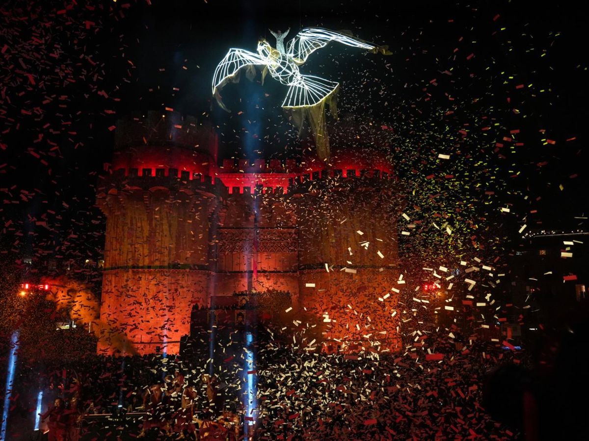 Actuación durante la Crida de las Fallas 2025, en las Torres de Serranos, a 22 de febrero de 2026, en Valencia, Comunidad Valenciana (España).   Eduardo Manzana - Europa Press