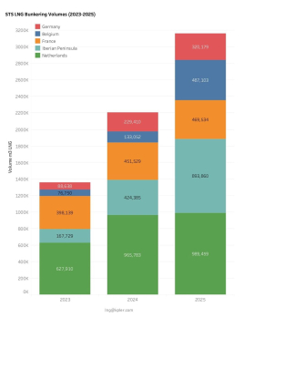 En solo dos años, el suministro de GNL a buques en los puertos ibéricos se ha cuadruplicado, hasta situarse en 893.860 metros cúbicos (m3) en 2025, el doble del volumen de 2024, reduciendo casi por completo la brecha con los Países Bajos, que alcanzaron 989.459 m3 y apenas avanzaron un 2%.