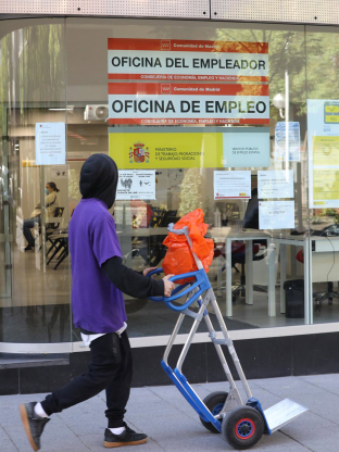 Un joven pasa con una carretilla por una oficina de empleo de Madrid Marta Fernández Jara - Europa Press