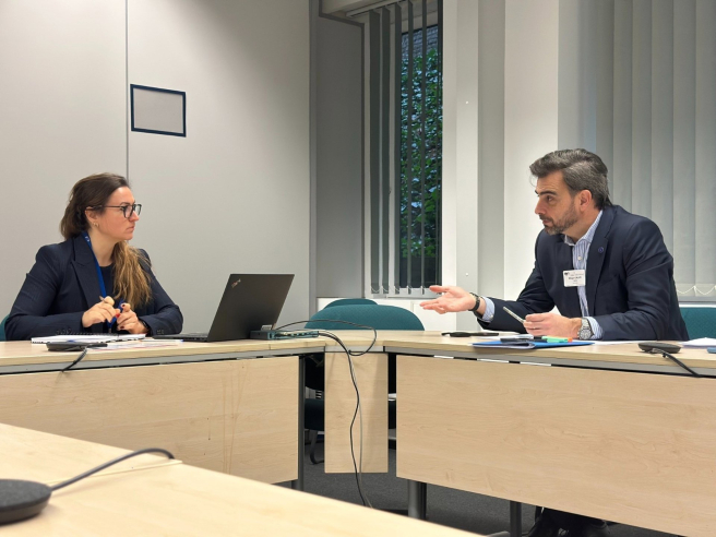 El conselleiro de Presidencia, Xustiza e Deportes, Diego Calvo, mantuvo este viernes un encuentro con Julie Buy, consejera del coordinador europeo del Corredor Atlántico, François Bausch, para exponer de nuevo las principales reclamaciones de Galicia en relación con esta infraestructura estratégica.
