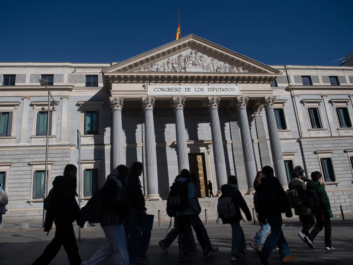 Bandera a media asta en el Congreso de los Diputados en honor a las víctimas del accidente ferroviario en Adamuz en enero. Fernando Sánchez - Europa Press