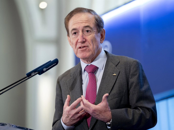 El presidente y CEO de Mapfre, Antonio Huertas, durante un desayuno de Nueva Economía Forum, en el Hotel Mandarin Oriental Ritz, a 16 de febrero de 2026, en Madrid (España). Alberto Ortega - Europa Press