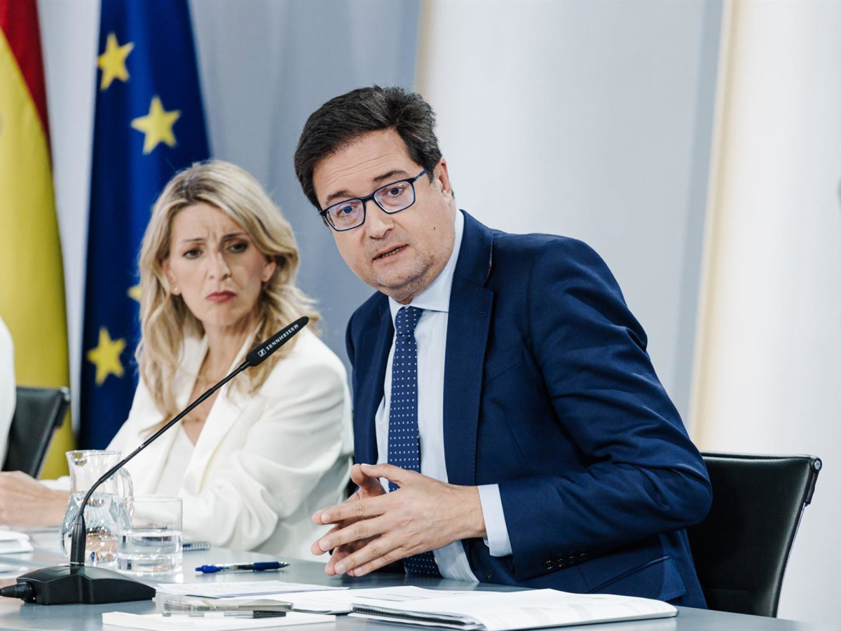La vicepresidenta segunda y ministra de Trabajo y Economía Social, Yolanda Díaz, y el ministro para la Transformación Digital y de la Función Pública, Óscar López. Carlos Luján - Europa Press