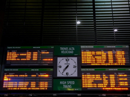 Paneles con las indicando la cancelación de los trenes destino Madrid. A 19 de enero del 2026 en Sevilla Eduardo Briones - Europa Press