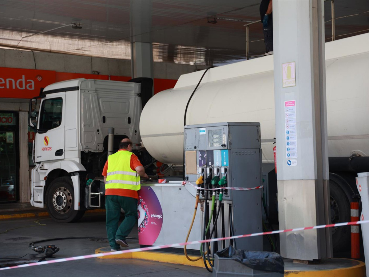 Un camión cisterna rellena el combustible de los depósitos de una gasolinera de Sevilla. A 29 de abril de 2025 en Sevilla, Andalucía (España). Rocío Ruz - Europa Press