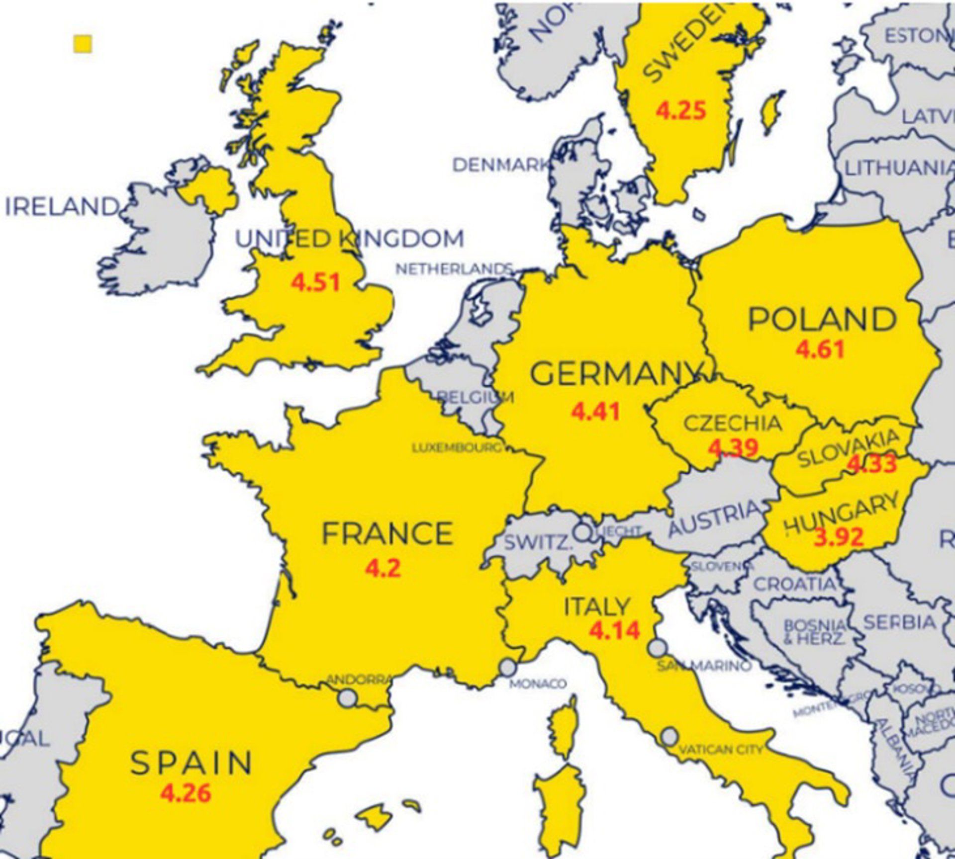 Según el informe de EFPA, la media de la salud financiera en Europa se sitúa en 4,3 de 7, con variaciones notables entre las naciones. Polonia (4,6), Reino Unido (4,5) y Alemania (4,4) encabezan la lista, mientras que Italia (4,1) y Hungría (3,9) muestran una mayor fragilidad económica.