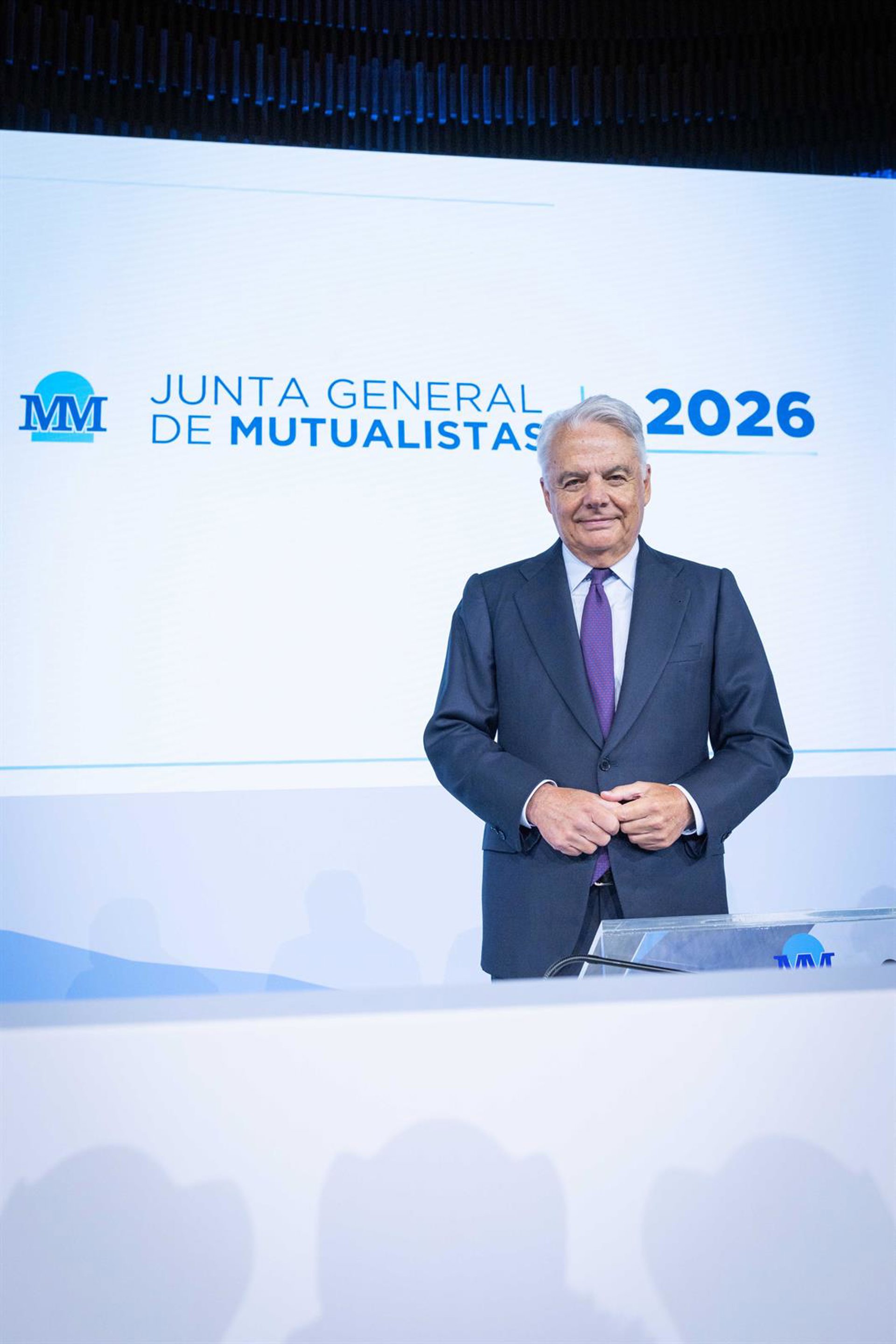 El presidente del grupo Mutua, Ignacio Garralda, durante la junta general de mutualistas 2026. MUTUA MADRILEÑA