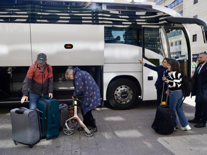 Pasajeros de la línea de alta velocidad Madrid-Málaga llegando a la capital malagueña en autobús desde Antequera Álex Zea - Europa Press