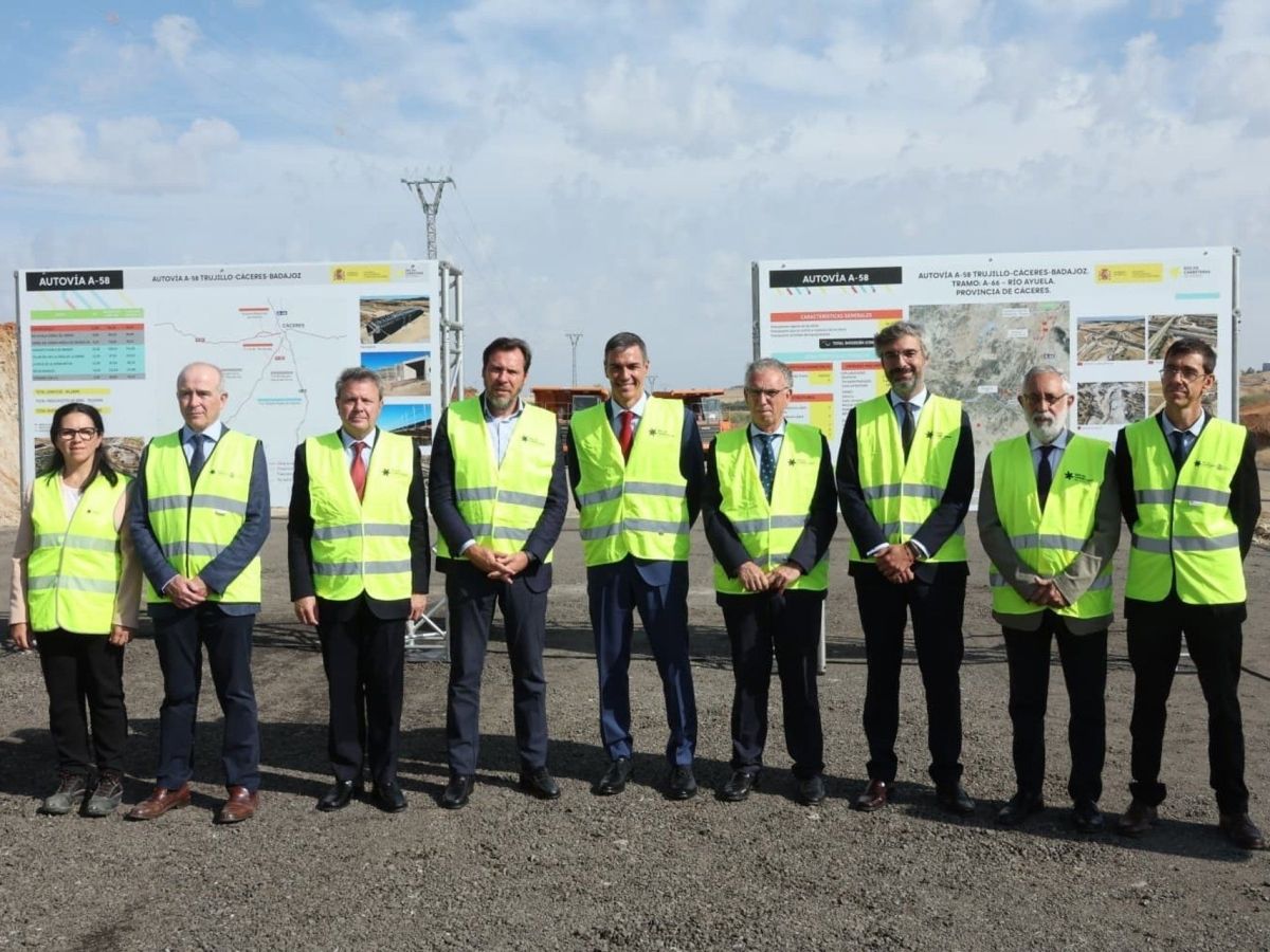 El presidente Pedro Sánchez, acompañado del ministro de Transportes y Movilidad Sostenible, Óscar Puente, ha inspeccionado este miércoles las obras del primer tramo de la autovía A-58, que discurre entre Cáceres y Río Ayuela. Este segmento es el inicio de una futura expansión que pretende unir Trujillo con Badajoz, con una inversión prevista de 100 millones de euros, incluido el IVA.