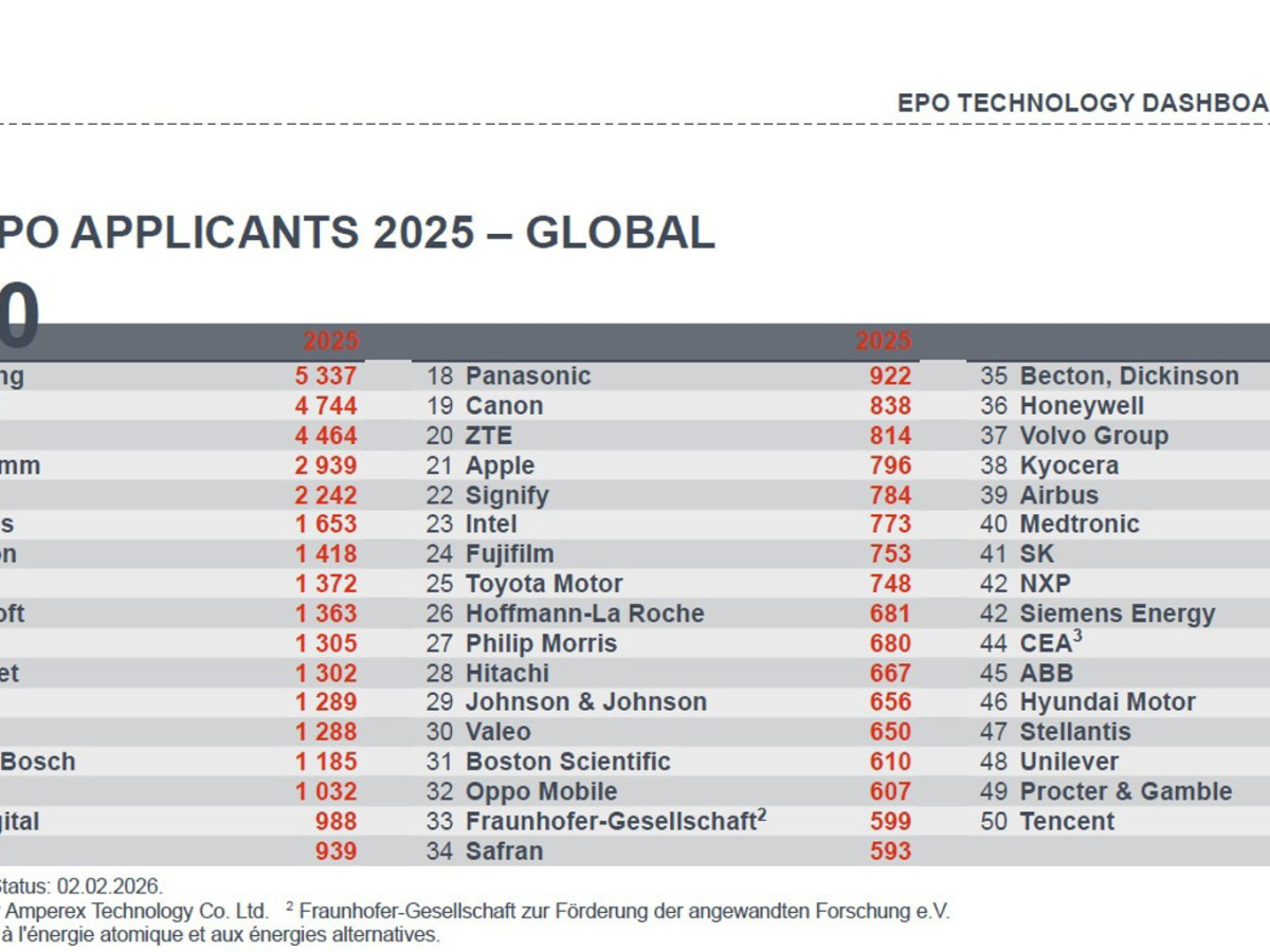 Desde la OEP subrayan que la ampliación del listado hasta los 50 mayores solicitantes pone de relieve la “amplitud sectorial” de la innovación que se dirige al mercado europeo. Además de los grandes grupos de telecomunicaciones y software, figuran empresas de ramas tradicionales inmersas en una profunda transformación tecnológica, como Philips, Robert Bosch, Sony, Toyota, Airbus o Hyundai Motor.