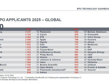 Samsung se consolida líder mundial en patentes europeas en 2025, en un año récord para la OEP y con Nokia como gran sorpresa del ranking.