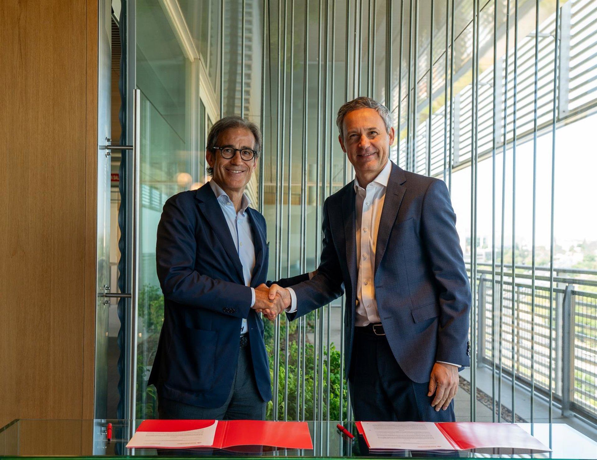 El acto de firma del acuerdo se celebró en Madrid, contando con la presencia de Javier Cortadellas, director de clientes, rentabilidad e instituciones de Santander España, y Pau Relat, presidente de MatHolding.
