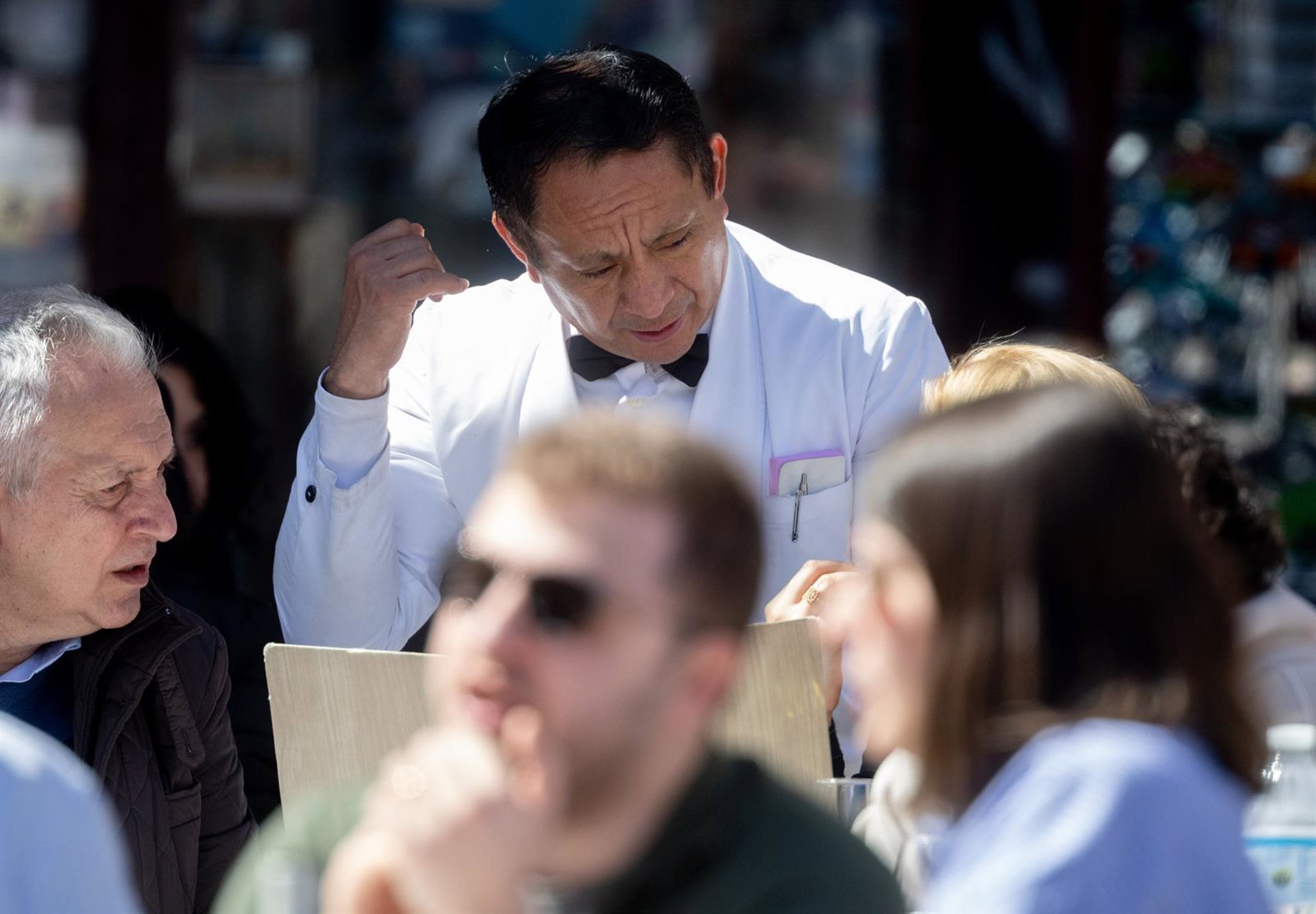 Un camarero de nacionalidad extranjera atiende una mesa en una terraza en el centro de Madrid Eduardo Parra - Europa Press