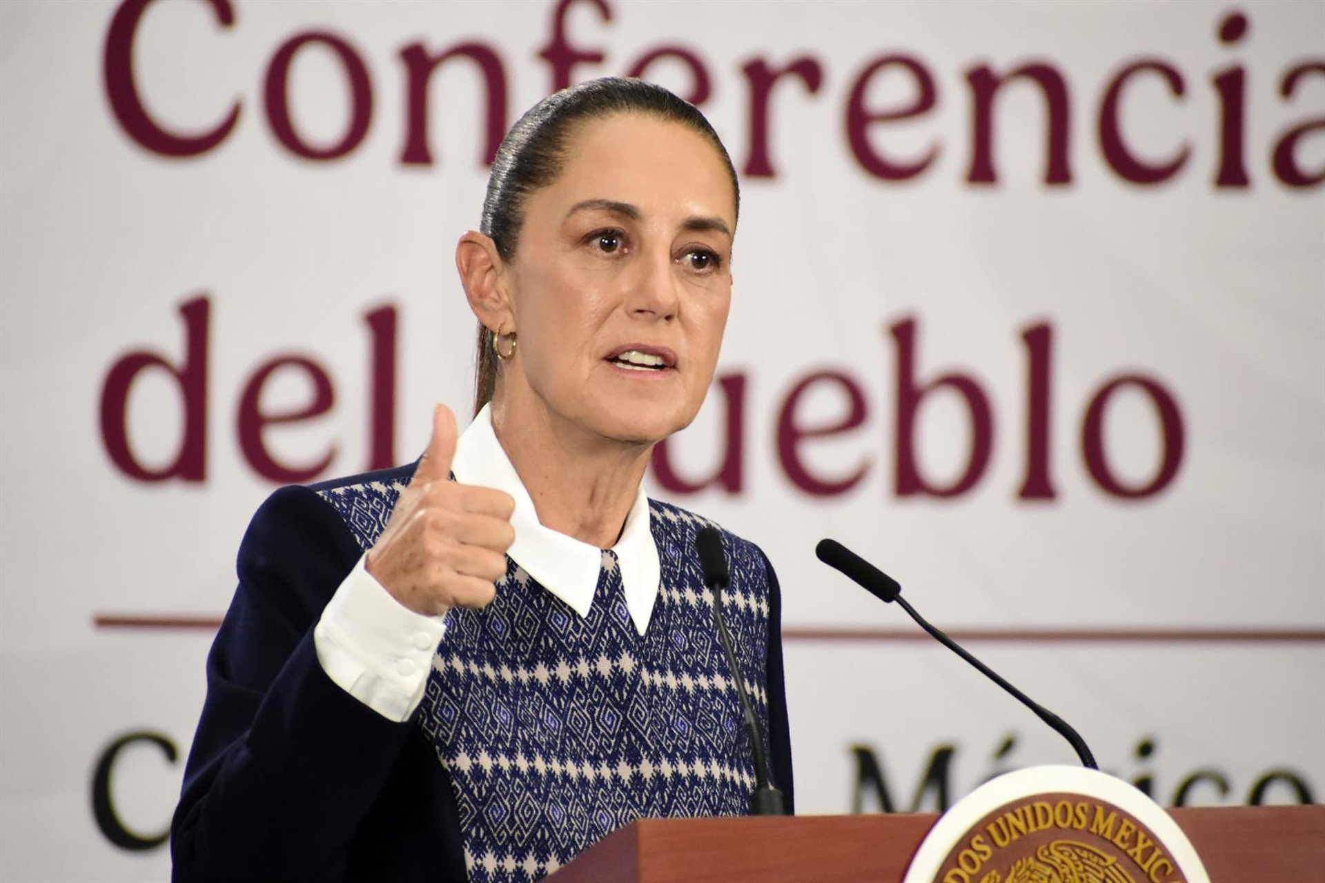 La presidenta de México, Claudia Sheinbaum, durante una de sus conferencias matutinas conocidas como 'Las Mañaneras'. Luis Barron / Zuma Press / Europa Press / Contacto