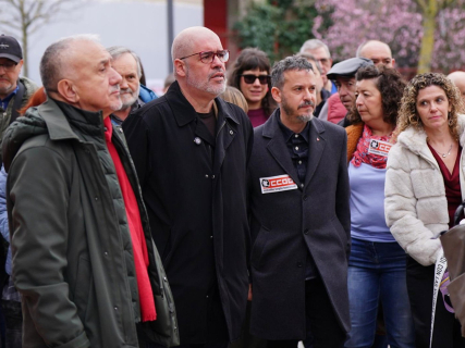 Sordo y el secretario general de UGT, Pepe Álvarez, han tomado parte este martes en la tradicional ofrenda floral en el monolito de Zaramaga, en Vitoria-Gasteiz, con motivo del 50 aniversario de la masacre del 3 de marzo de 1976, en la que cinco personas fallecieron por los disparos de la Policía Armada contra una movilización obrera.