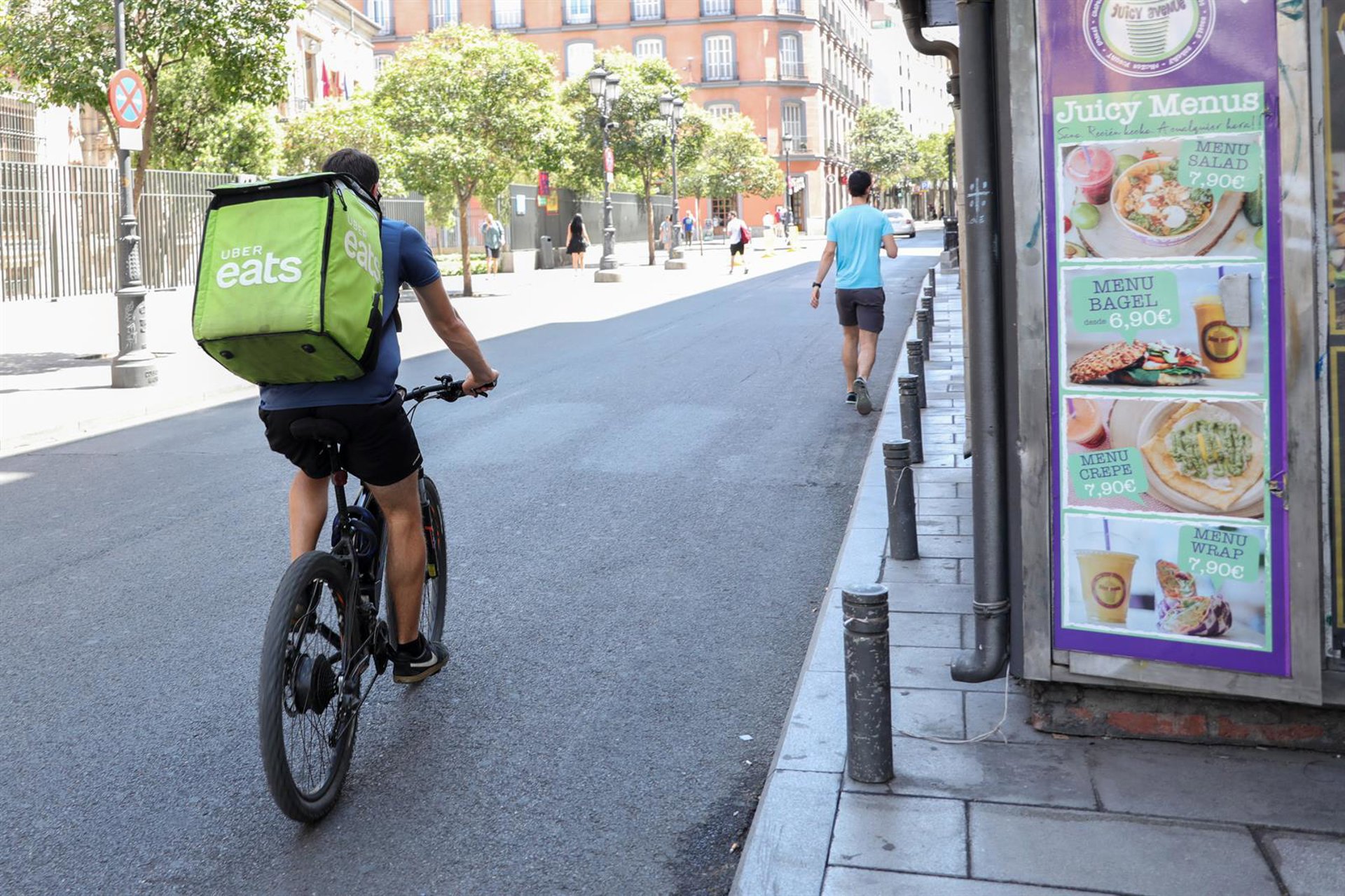 Un repartidor de la empresa Uber Eats en bicicleta por una calle del centro de Madrid Jesús Hellín - Europa Press