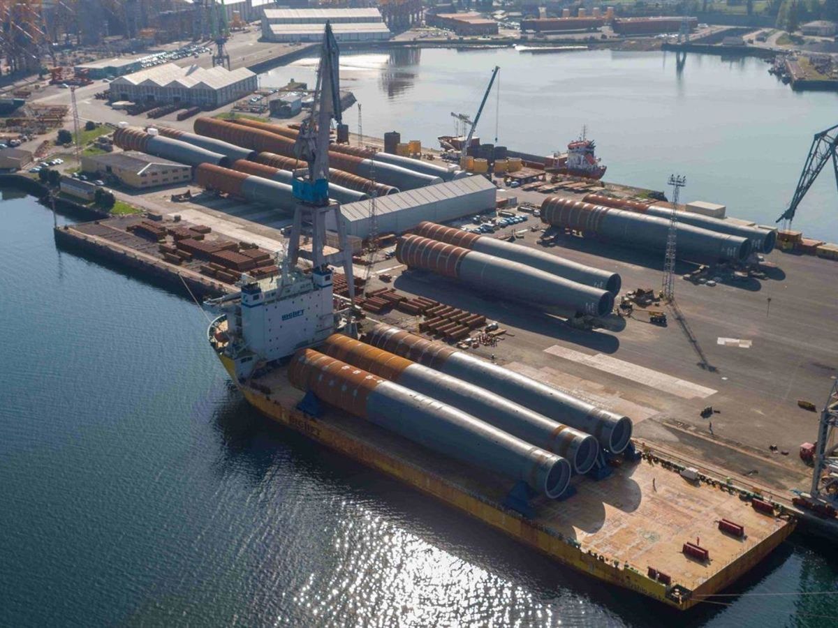 Los monopilotes alcanzan hasta 84 metros de largo, 10 metros de diámetro y un peso de hasta 2.100 toneladas, generando 300 empleos.